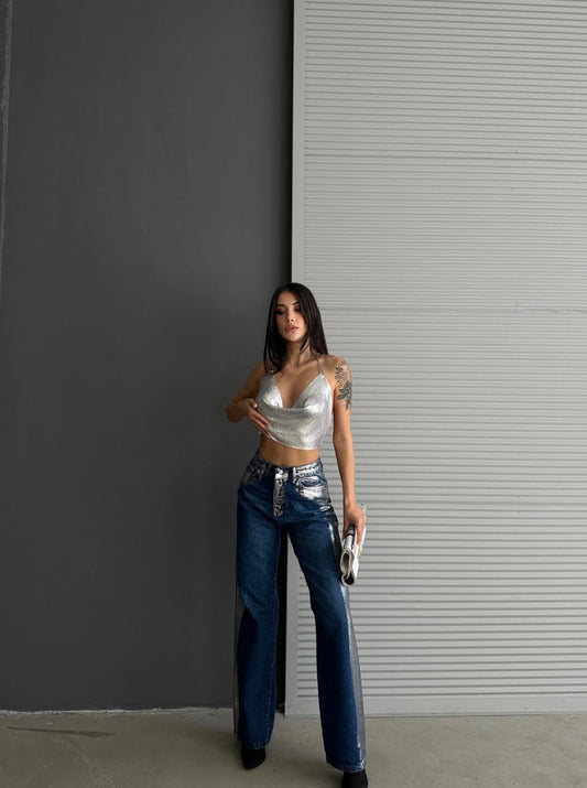 METALLIC SILVER DENIM